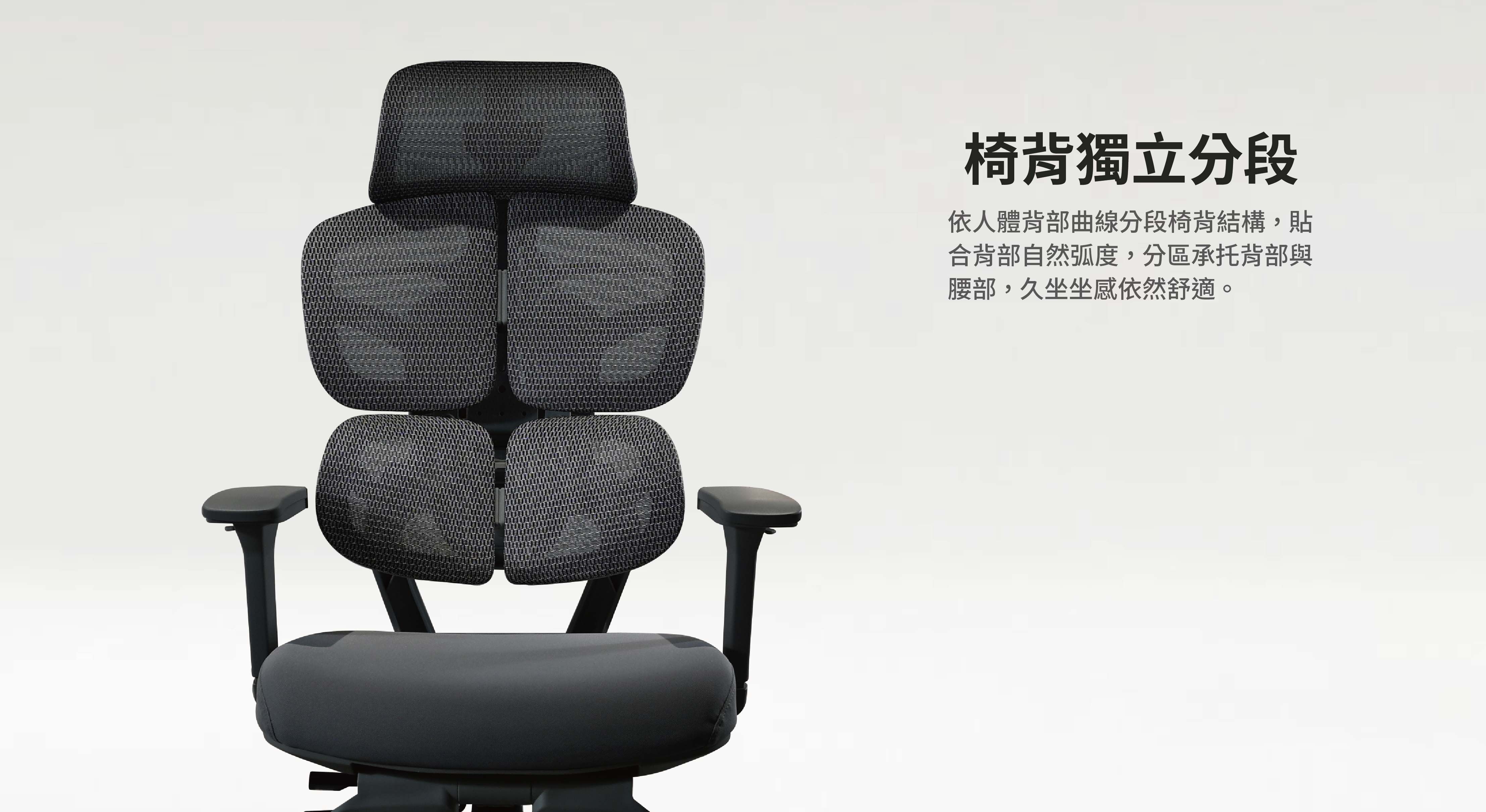 2.椅背獨立分段設計,並且可升降調節,符合各種身形坐姿。