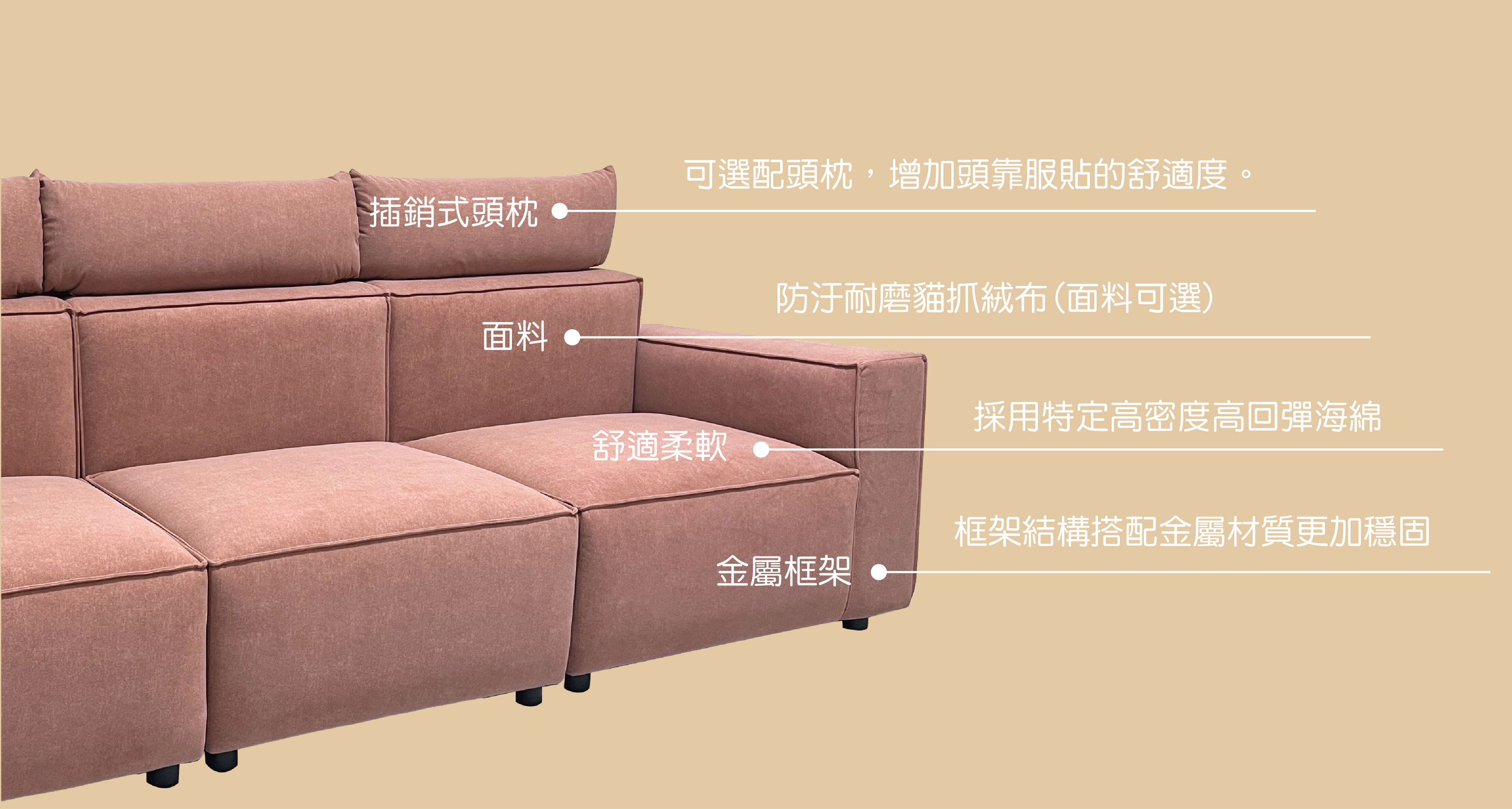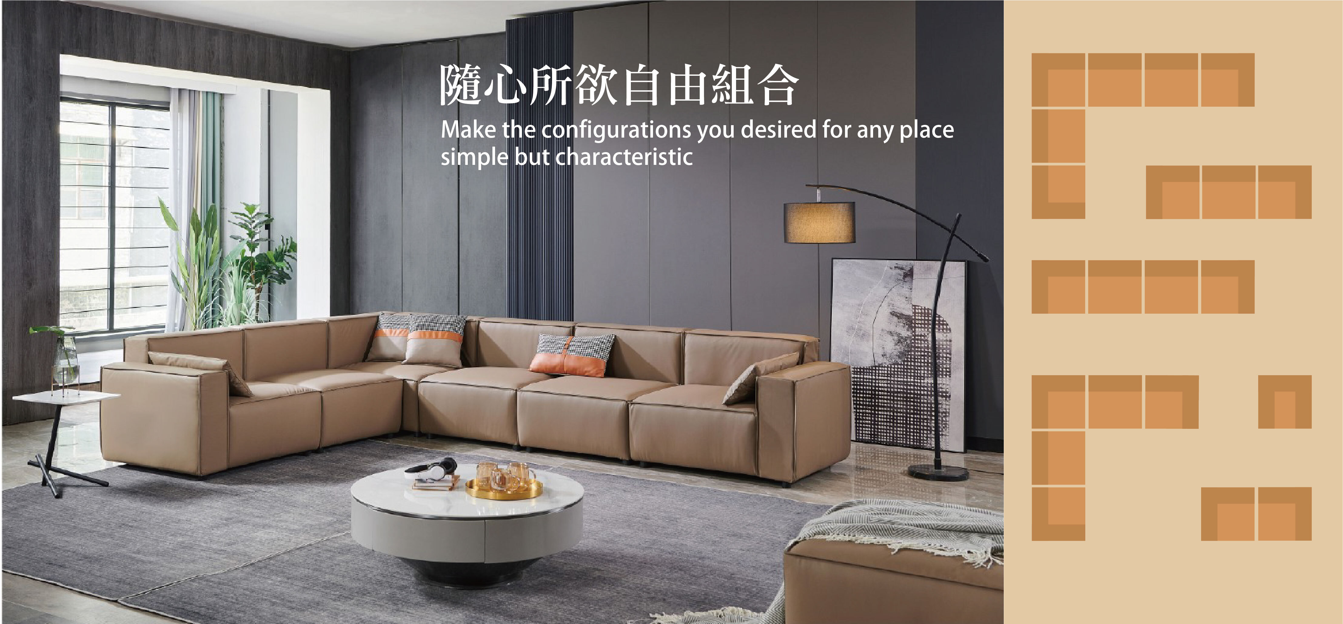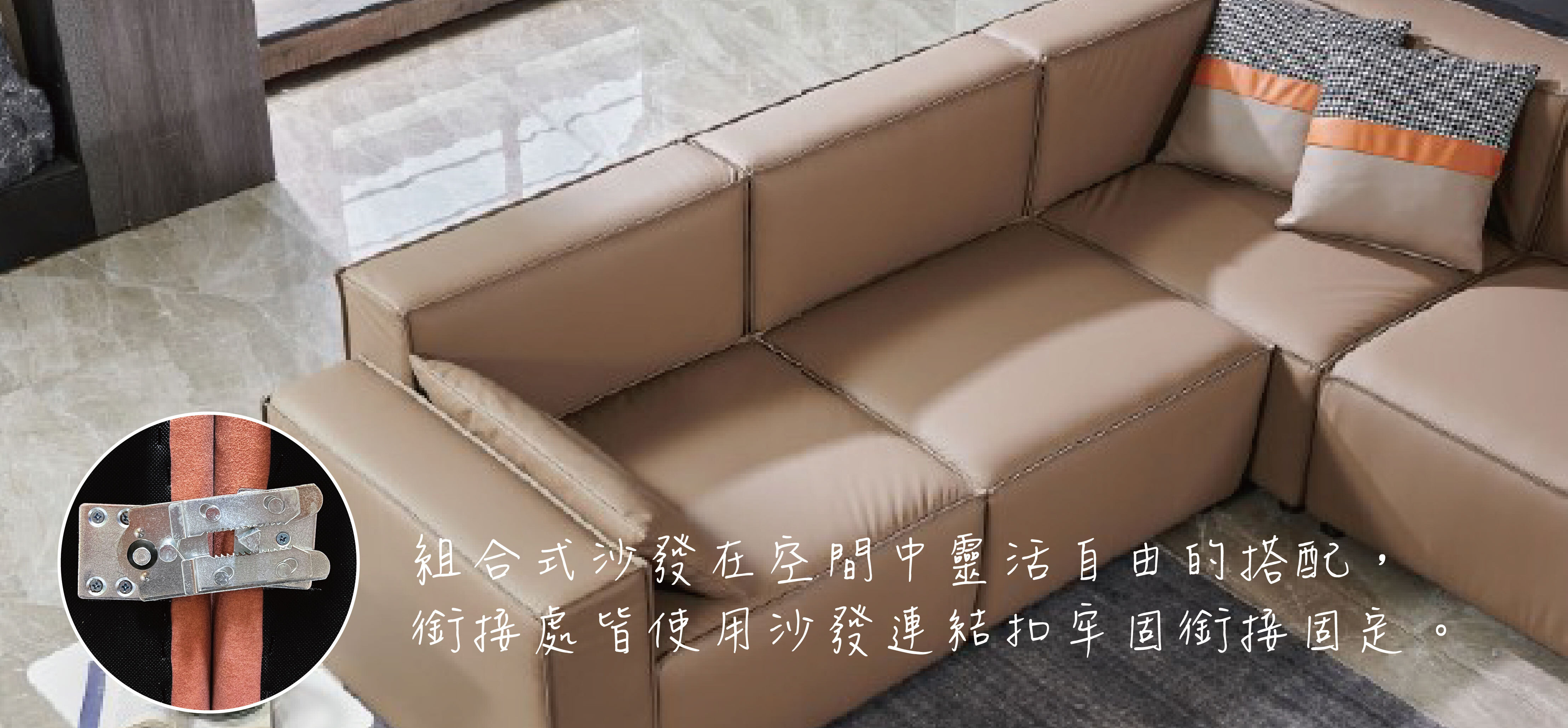 從沙發的面料(牛皮、科技牛皮、貓抓布、貓抓絨布、亞麻、泰迪系列材質)、 特定用色,提供客製化服務,滿足顧客居家佈置需求,讓空間生活美學更具個人化。