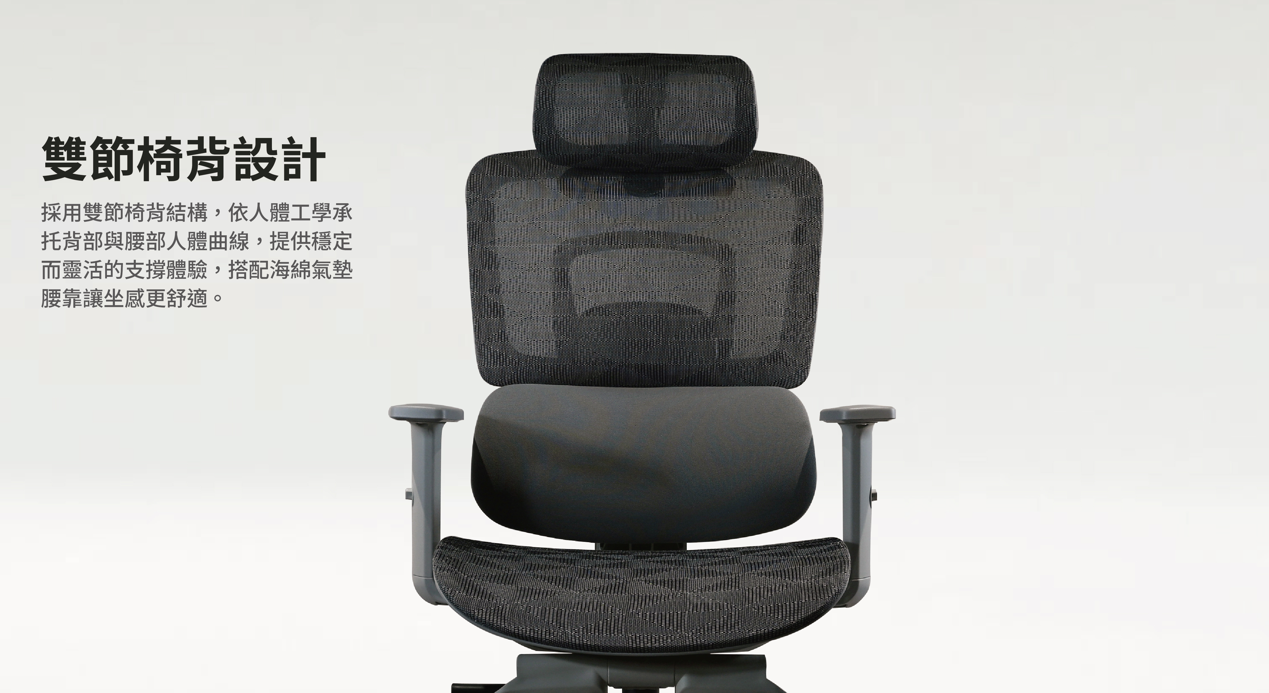 1.雙節椅背設計,給腰部最放鬆的支持。