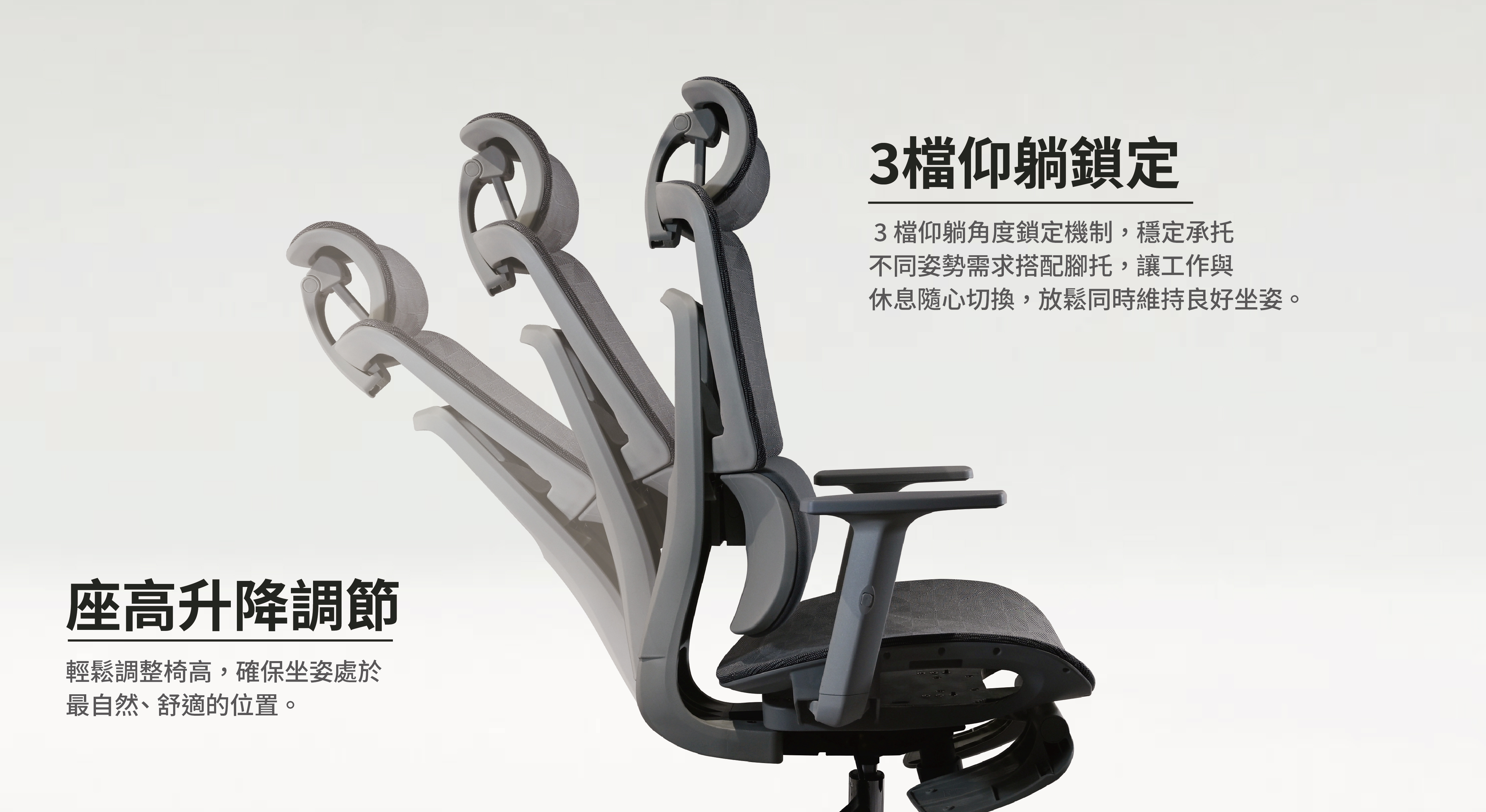 4.3檔仰躺鎖定,搭配腳托,實現坐躺合一