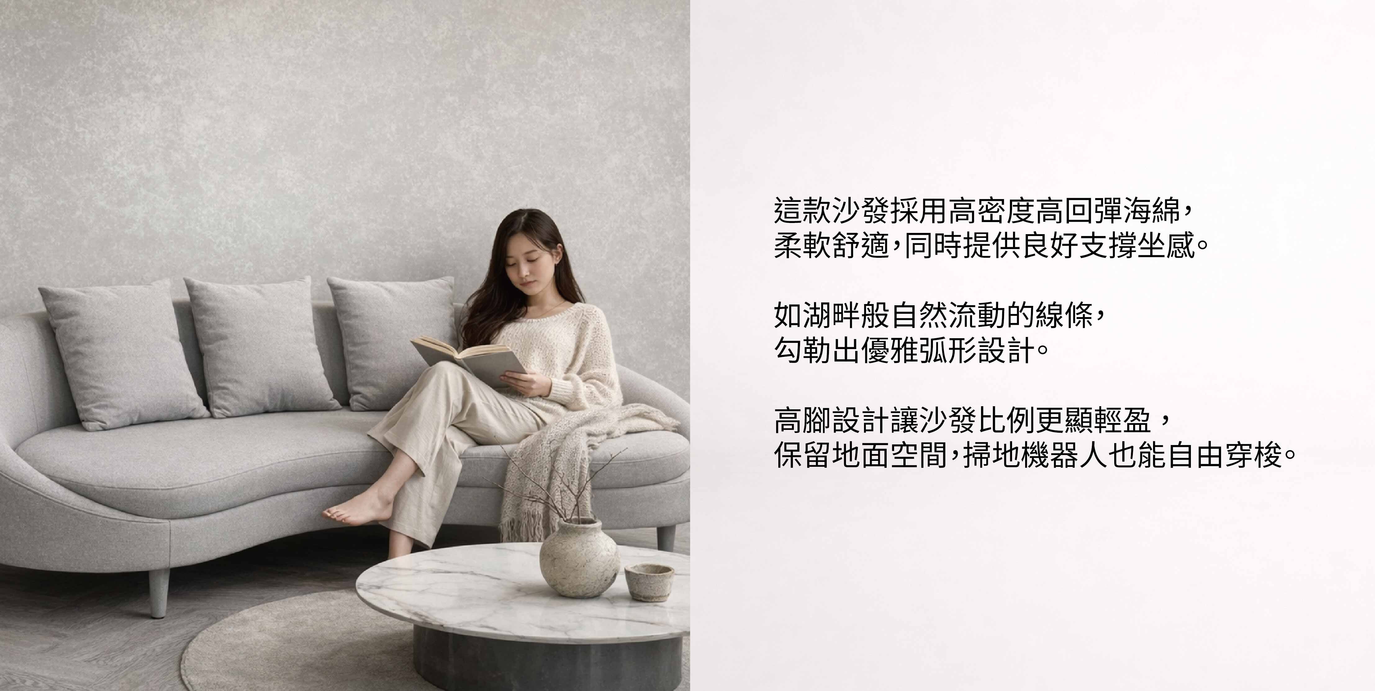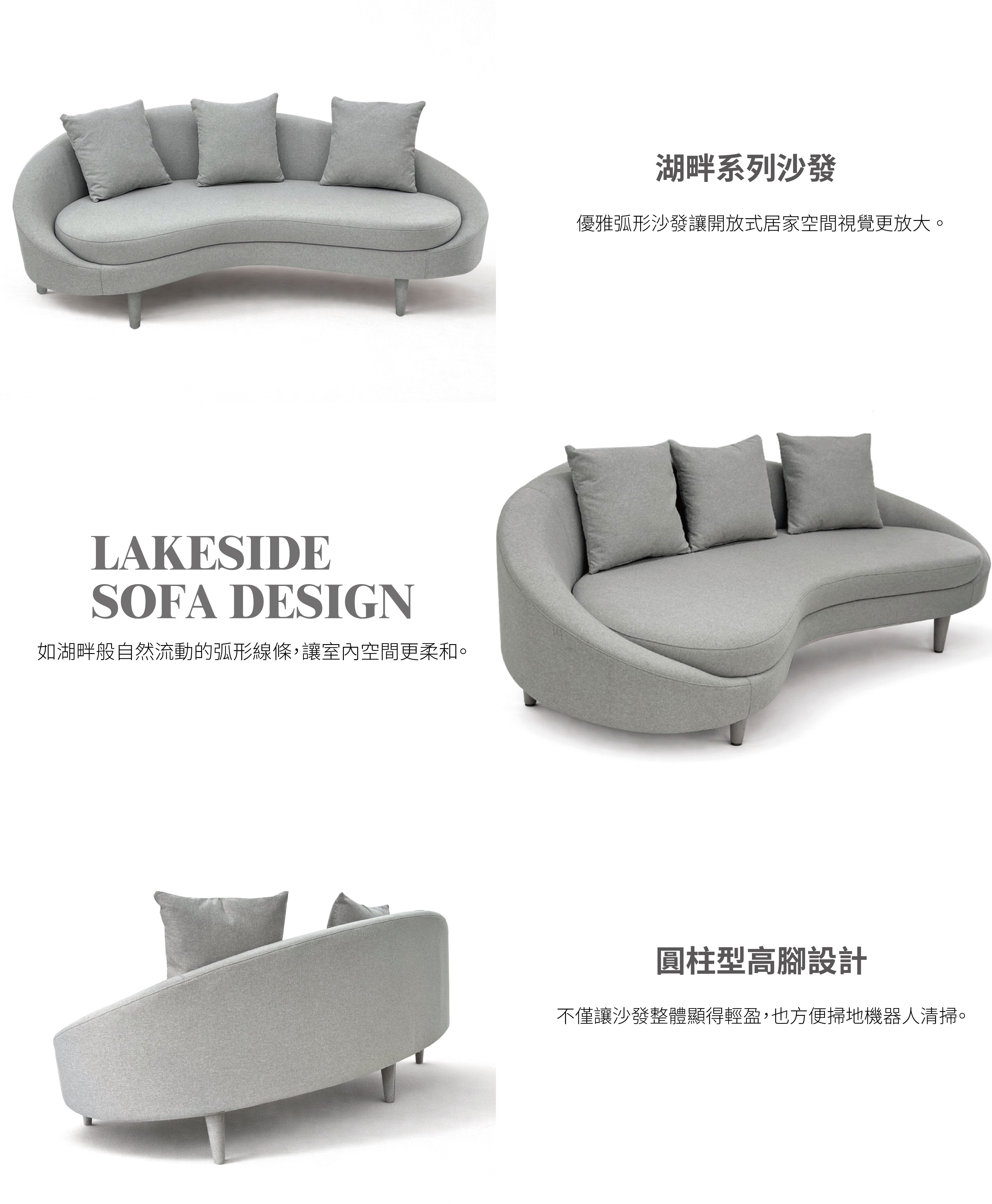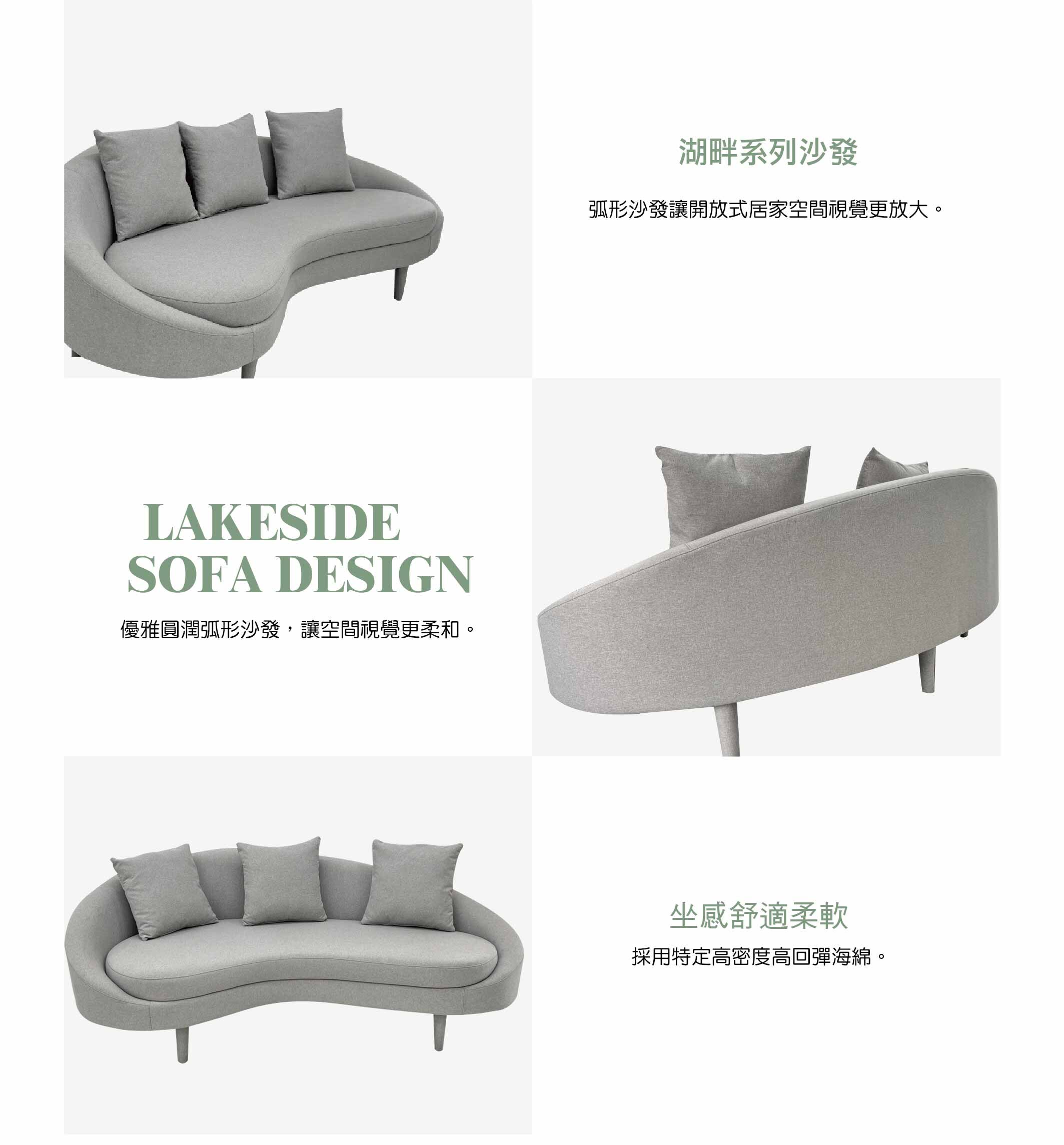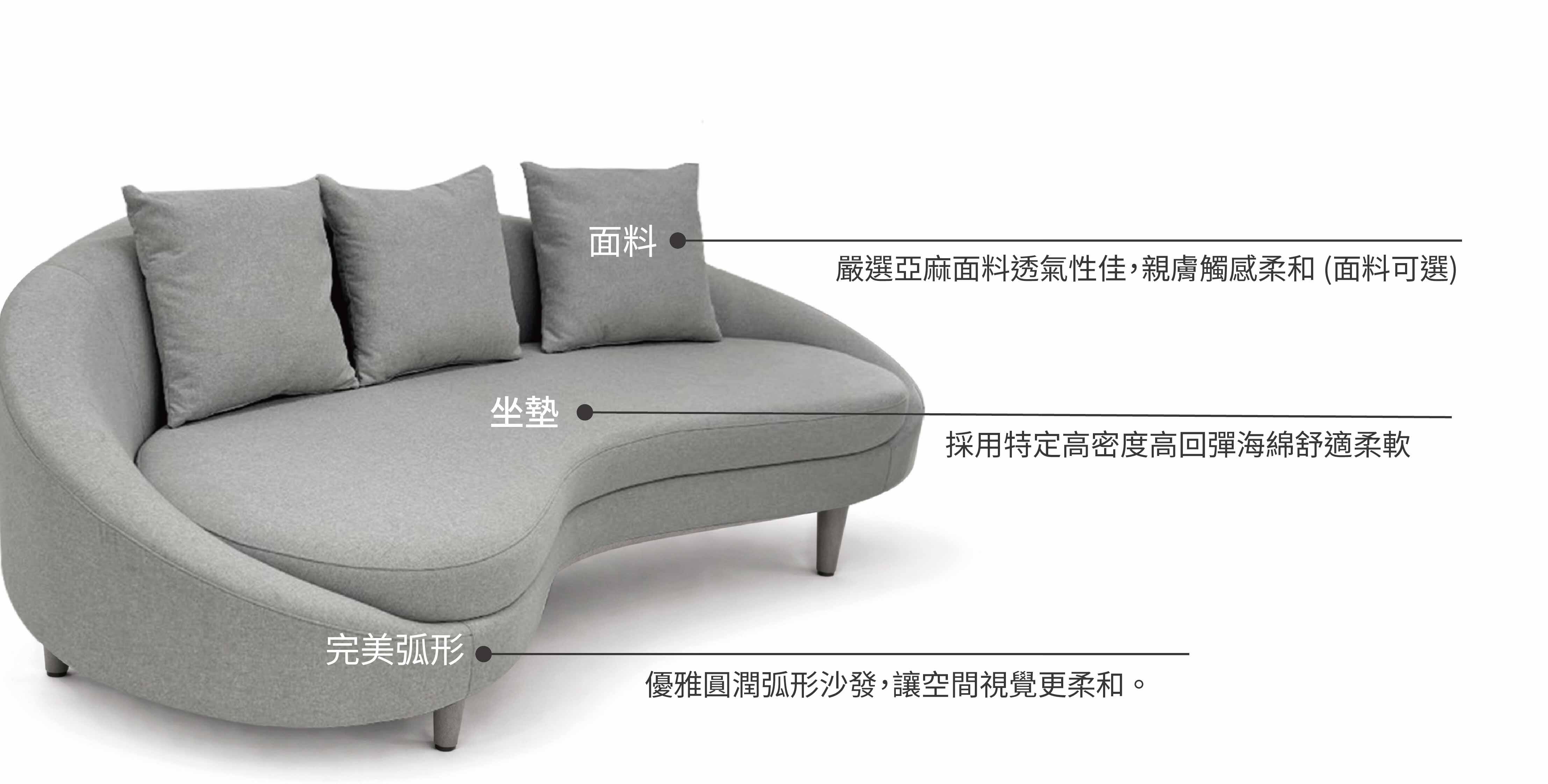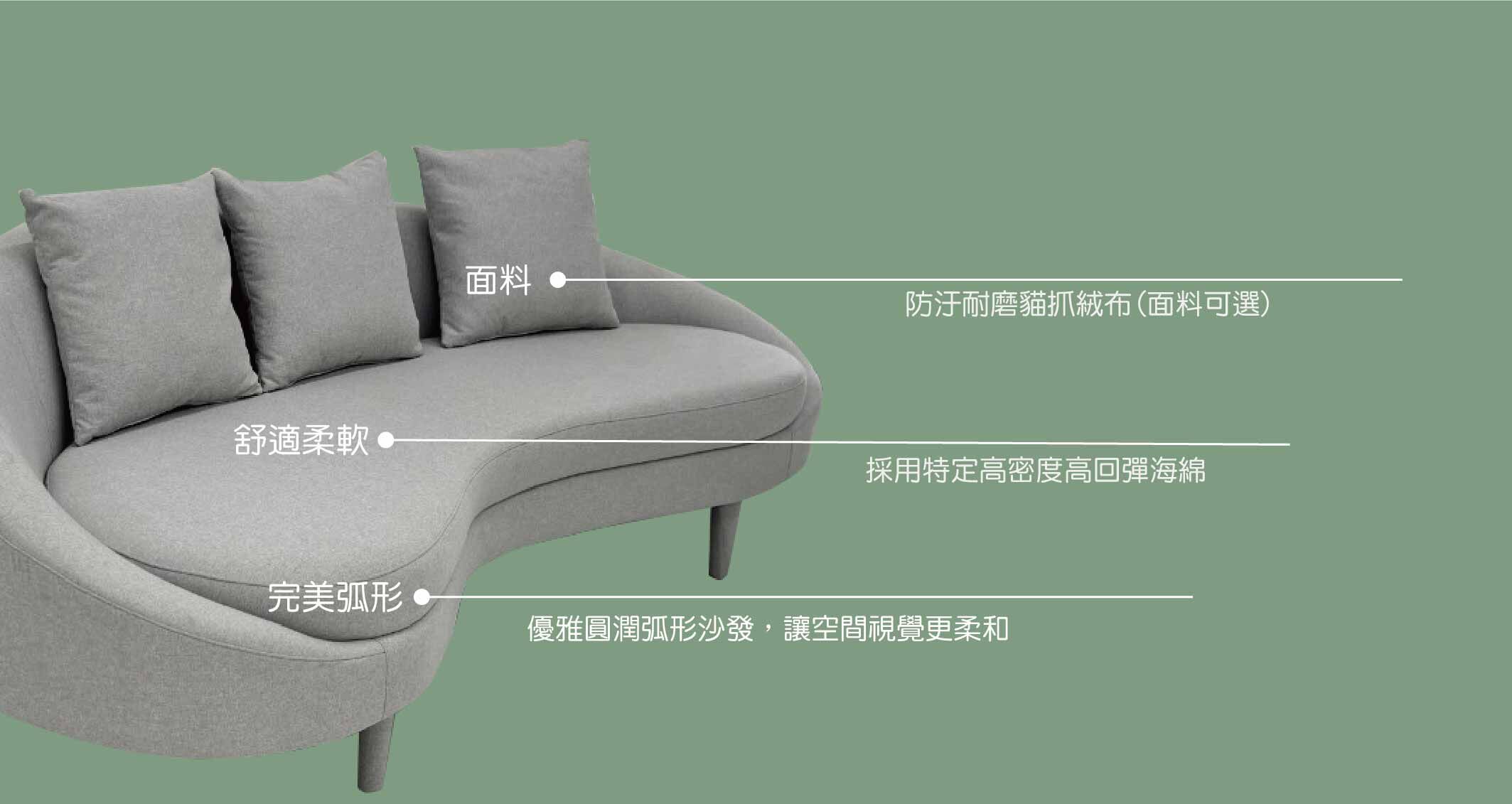 2.完美弧形線條讓視覺空間圓潤柔和,弧形沙發優雅圓潤弧形曲線,讓居家開放空間視覺更放大。