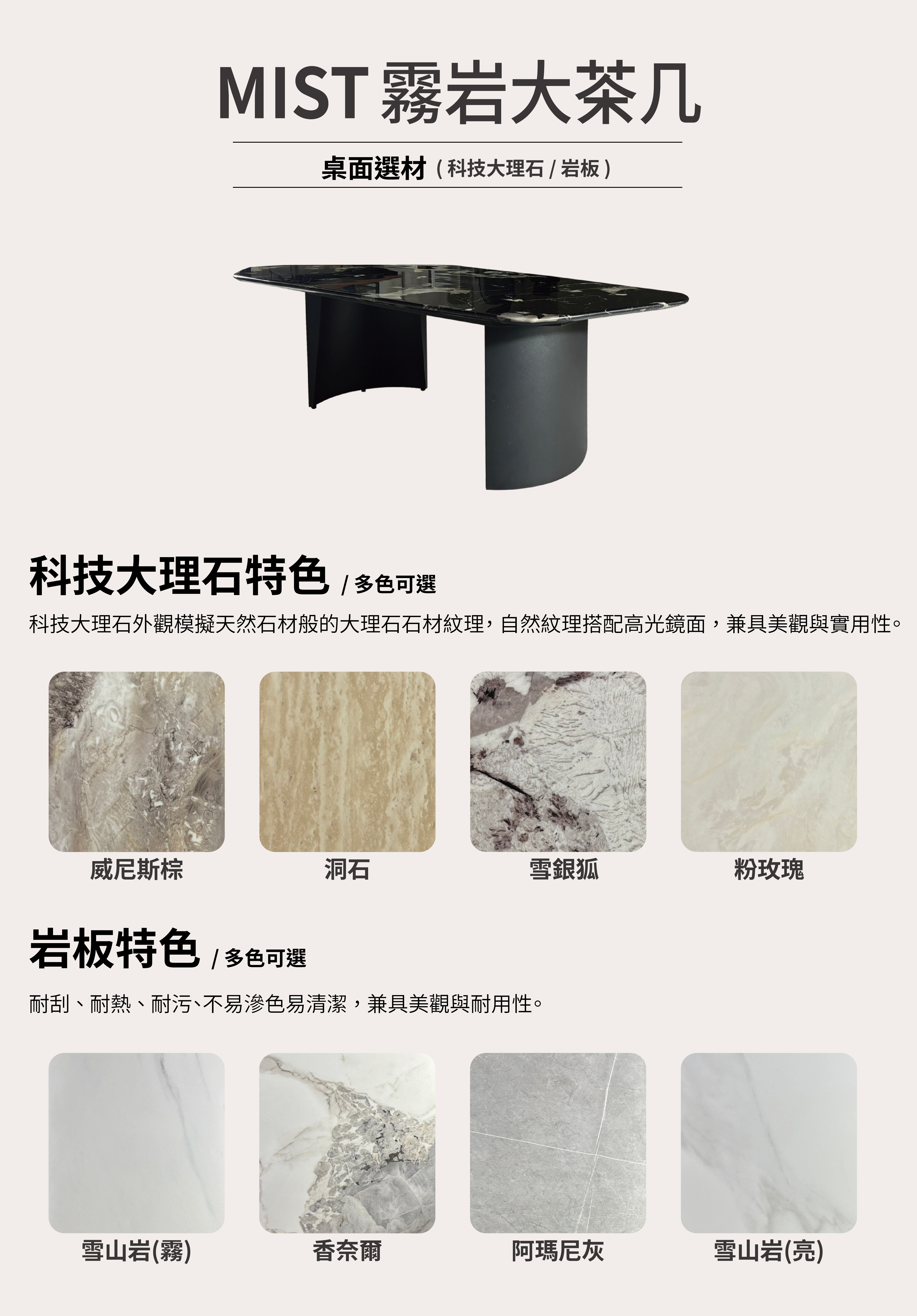 1. 桌面可選材,滿足不同空間風格需求。