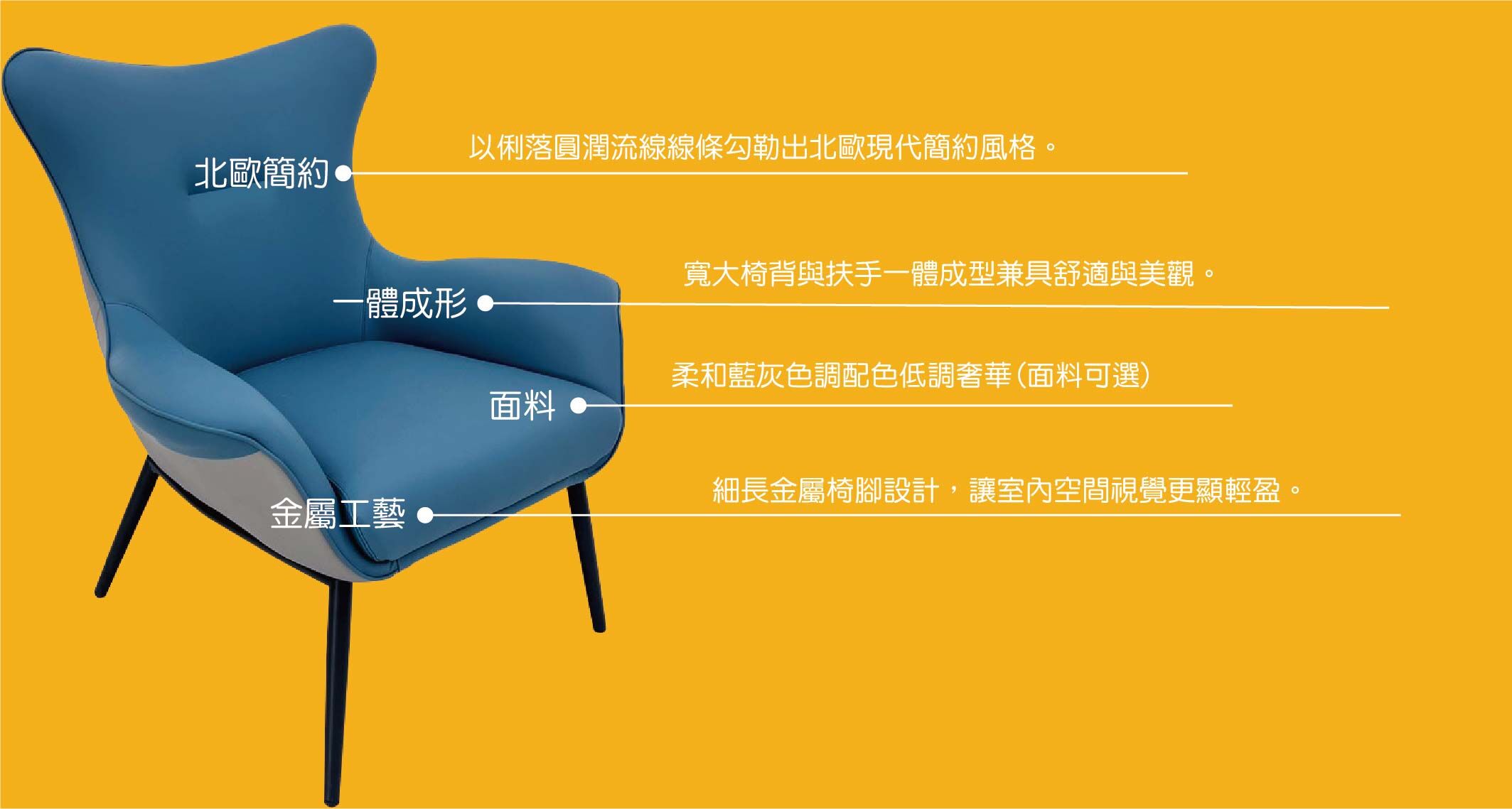 1.以俐落圓潤流線線條勾勒出北歐現代簡約風格。